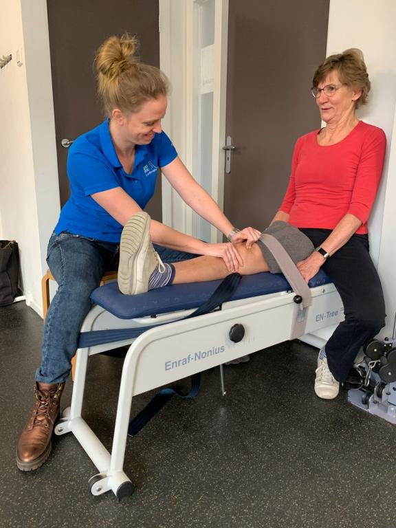 Gonartrose komt veel voor en kan leiden tot het plaatsen van een totale knieprothese. Bekende uitdagingen zijn: het bereiken van een voldoende mobiliteit van de knie, goede neuromusculaire controle, adequate spierkracht van de beenspieren, en een goed looppatroon. Dit artikel beschrijft de casus van een 67-jarige vrouw bij wie een totale knieprothese werd geplaatst, waarna sprake was van een beperkte knieflexie. Uniek in deze casus was de samenwerking tussen de fysiotherapeut en de revalidatietrainer. Het voordeel voor de fysiotherapeut was dat zij hierdoor de volledige behandeltijd kon besteden aan het toepassen van mobilisatietechnieken. Het voordeel van de revalidatietrainer was dat hij gewend was veel structuur te bieden in zijn programma’s, het type oefeningen aansloten op functionele bewegingsvormen, en er een duidelijke opbouw was in de intensiteit van de oefeningen.